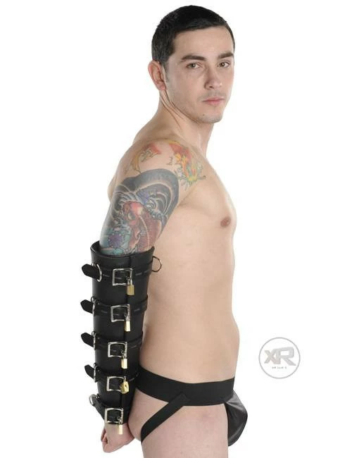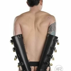 These arms splints are a new addition to our premium leather line. Made to the same impeccable standards as our premium leather restraints. These splints will make sure your sub keeps their arms perfectly straight. When they are wrapped tight around the arm these splints will not give. The D-rings that are attached to each strap can be used for tying the splints to the body, other objects or even to each other (as for armbinders).