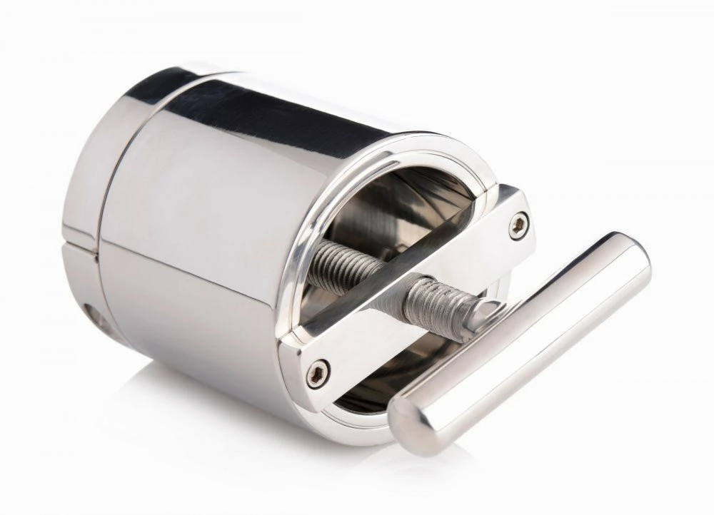 Enjoy intense cock and ball play with this heavy steel Ball Press Chamber