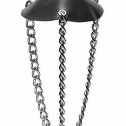 Confine his scrotum in the tight grasp of the leather parachute and hook up the leash to the chains. You’ll have his balls completely at your mercy, keeping him entirely under your control. Three shining chains hang heavily from the parachute, dangling a metal O-ring for your to attach the 4 foot leather leash to. Dominate his movements with every tug, pulling on his ball sack and stretching it out for your sadistic pleasure.The leash also has a looped leather wrist strap, so you can get a firm grip as you take complete control of the situation.
