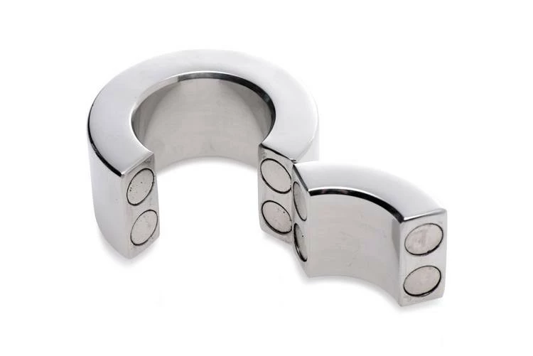 This heavy magnetic device is perfect for men who enjoy the pull of a heavy ball stretcher during masturbation, or bad slaves who need to be punished by their owners! Whether it’s for pleasure or CBT, this weighted instrument is uniquely designed for an intense experience. Yank that scrotum down and through the opening of the hefty stainless steel ring! Make sure all the skin is against the back of the stretcher before replacing the magnetic closure. The stainless steel will clink loudly together, leaving his balls trapped and vulnerable! When you let go, it will drop down, pulling his balls with it for an incredible sensation!