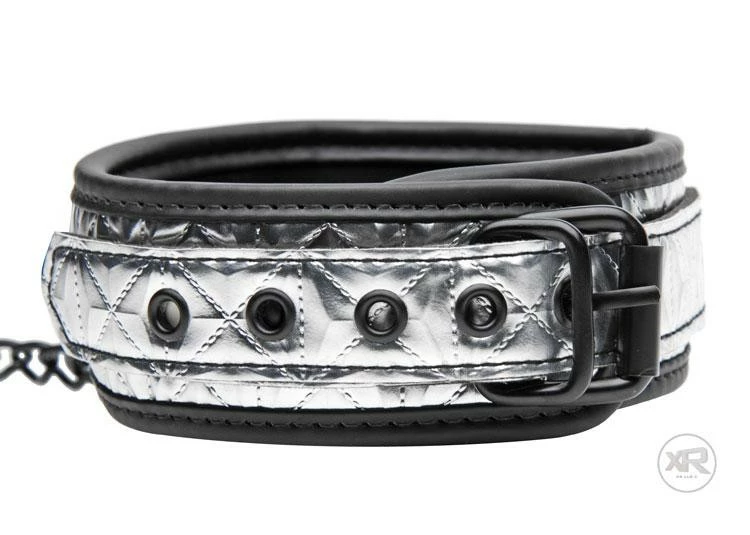 Take complete ownership of your sub with the Platinum Bound Leash and Collar Set from the Master Series. This bold combination gives you control of your sub as you make them crawl around at your feet. The collar features a sleek and sexy embossed outer design, comfortable padded Neoprene lining, and black, nickel-free hardware. Fully adjustable via the simple, belt-style enclosure, this collar will remind your sub that they belong to you! Connected to it is a devious thirty inch removable black metal chain, topped with a leather strap, for you to guide your sub throughout your scene. You’re the Master here!