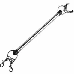 Even something as simple as the bondage bar can add many new dimensions to bondage play with your partner. The bar is made of a lightweight metal with plastic ends. Those ends feature an O-ring with swivel snaps.