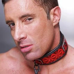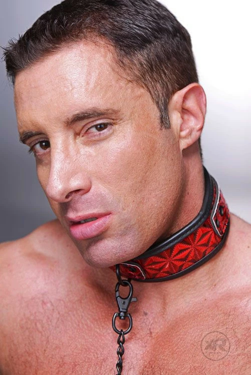 Featuring a sexy red and black decor, this collar and leash set is designed to make sure your partner knows who has the control. The collar is lined with soft neoprene. The hardware is all nickel free. The collar is fully adjustable with a belt style buckle and the leash offers 30″ of long, black chain.