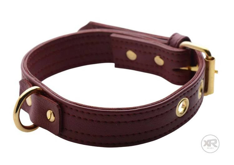 Your slave deserves a collar that shows the world how well you’ve trained them. They pleasure and obey you, so treat them to a timeless symbol of your gratitude and devotion when you collar them in rich, deep red leather. Accented with gorgeous golden details, this collar will shine from their throat with sophistication and luxury. A unique locking system allows you to keep your submissive under lock and key at all times, reminding both of you of the responsibility and trust that comes with ownership. A D-ring at the front of the collar allows you to connect a leash, personalized tag, or any of your favorite accessories. This exquisite collar is subtle and elegant that they could proudly wear it out for the world to see, but if your connection is more private, it also makes a lovely piece for play scenes.