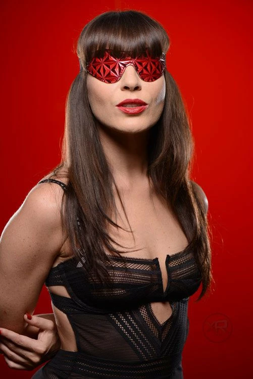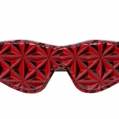 This decorated embossed blindfold will make sure that your partner is in the dark about what you plan to do with them. That heightened sense of anticipation can do wonders for bondage play. The blindfold is lined in soft neoprene, with a strap made of stretchable elastic material. It features embossed black and red vinyl.