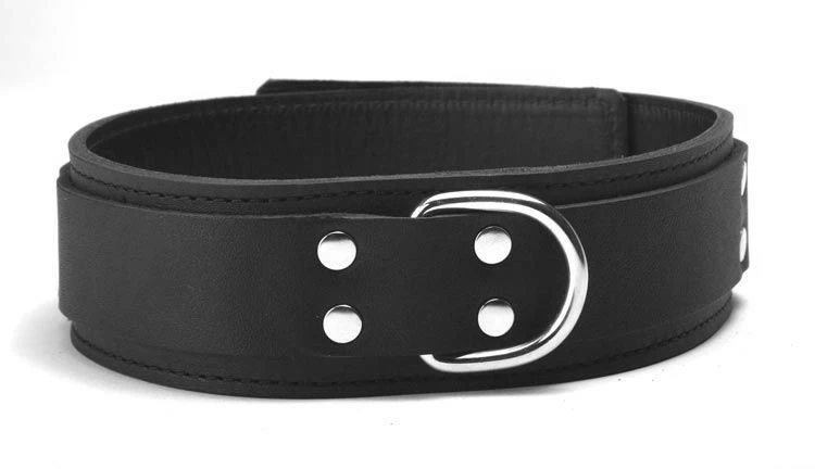 Quality construction and low price make this a great value. It measures 1.5 inches wide and fits necks from 12.5-17 inches. Solid steel d-ring in the front makes a great point of attachment for bondage or to be lead around on a leash.