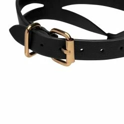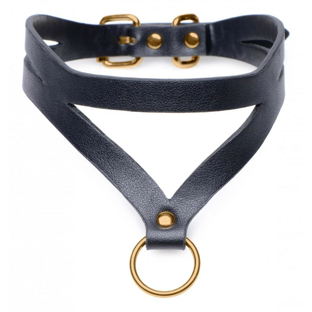 Bondage Baddie Black & Gold Collar w/ O-Ring Specs: