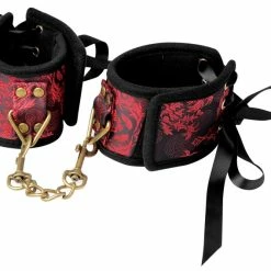 This kit of five essential BDSM accessories makes experimenting easy, comfortable, and of course, sexy! Each attractive piece features an elegant black and red brocade pattern to set the mood. Collar your plaything with the extra wide posture collar to keep their chin up and their eyes on you. If you prefer them to be surprised by your every touch, the padded no-peek blindfold will keep them guessing what’s coming next! A set of each ankle and wrist cuffs with connector chains will keep them bound as you have your way with their body. Finally, a leash connects to the collar to take your pet for a walk on hands and knees! Enjoy the convenience of velcro closures and the beauty of corset details. Explore your desires like never before!