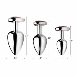 Who knew that the best way to someone’s heart is sometimes through the booty? Available in three sizes, these smooth, metal butt plugs are easy to insert, comfortable to wear, and fantastic for all experience levels. The slim stem and broad base keep the plug securely in place, even when things get wild! Adorned with a beautiful heart-shaped gem, this gorgeous plug will make your asshole sparkle temptingly, begging your lover to play. Made of nickel-free aluminum allow, it is heavy enough to provide a greater sense of fullness and can also be heated or cooled in water for temperature play. The non-porous material sanitizes thoroughly with mild soap and water and can be used with any lubricant of your choice.