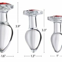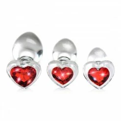 Decorate your derriere with this set of red heart gems and show off your love for your special someone. Made with solid see-through glass to provide a satisfying hardness and brilliant aesthetic to add a hint of glamour to your anal play!