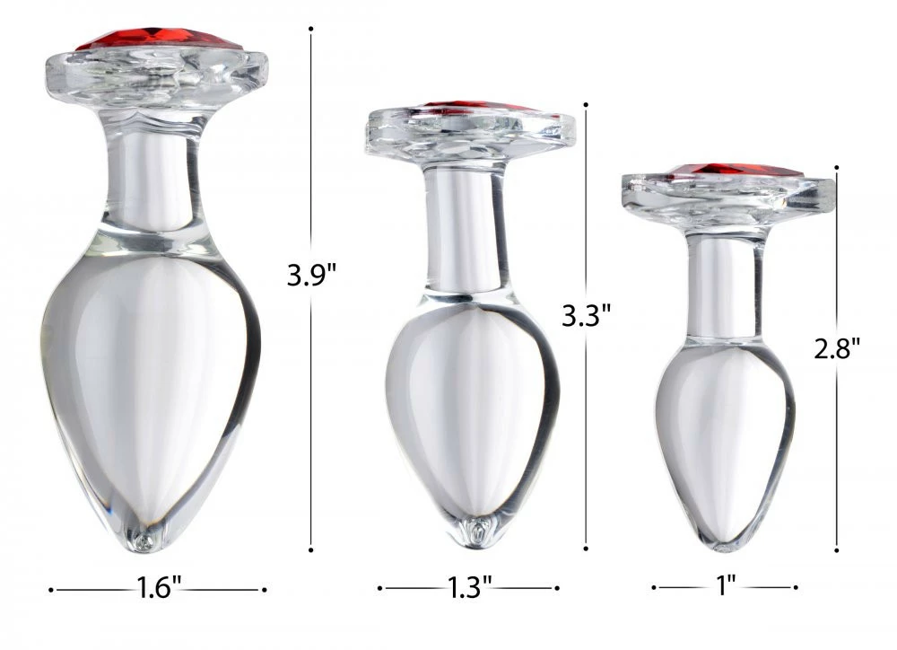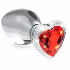 Decorate your derriere with a red heart gem to showoff your love for your special someone. Made with solid see-through glass to provide a satisfying hardness and brilliant aesthetic to add a hint of glamour to your anal play!