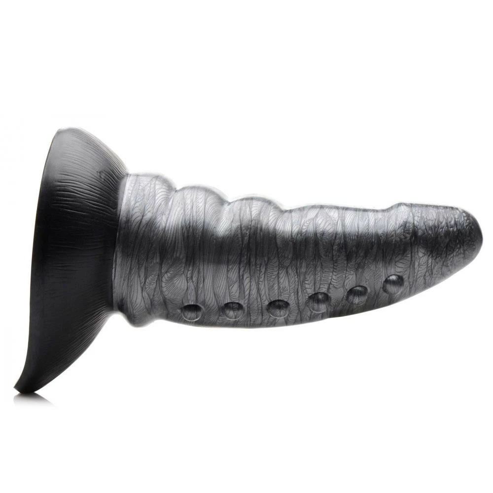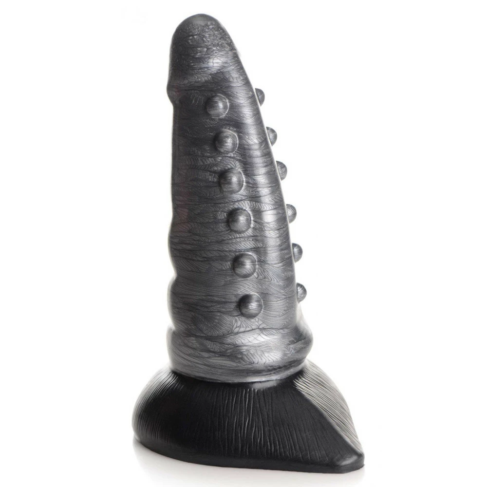 Part tentacle, part cock, this Beastly Tapered Bumpy dildo is ready to ride! Designed after deep sea creatures, this dildo is metallic gray and silver, has two rows of nubs along the bottom of the shaft and has a fat, meaty shaft that ends in a round tip. The base of the dildo can be used solo with the suction cup base by pressing firmly on a flat surface and riding it. Or have fun with a partner and pair it with a strapon harness! Made of premium silicone, it is phthalate-free and body-safe. Only use with water-based lubricants for best results. Wash with warm water and soap then spray with a toy cleaner and wipe dry to clean.