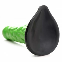 This Thick Scaly Silicone Dildo is perfect for making your deep, dark fantasies come true! The brilliant green color and the detailed scales end in a flanged, black base so you can imagine the reptilian conqueror of your dreams rock hard and ready! Made of premium silicone, this dildo is phthalate-free and body-safe to use as long as you only use it with water-based lubricants. The wide, flanged base serves as a powerful suction cup that you can press firmly against any flat surface to ride solo. Invite a partner in and pair the dildo with a harness so one of you can play the role of reptilian conqueror and the other their submissive prey! To clean after use, simply use warm water and soap, then spray with a toy cleaner and wipe dry before storing.