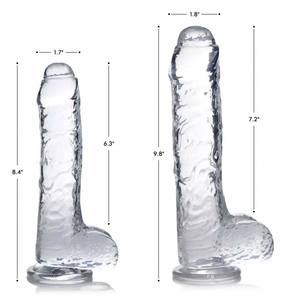 These clear, see through dildos feature hand crafted designs for maximum pleasure! Meaty, firm, and pliable for an amazing blend of comfort and satisfaction for any hole – the satisfying density of this shaft is a joy to squeeze on while the realistic foreskin and ballsack are a joy to rub against!
