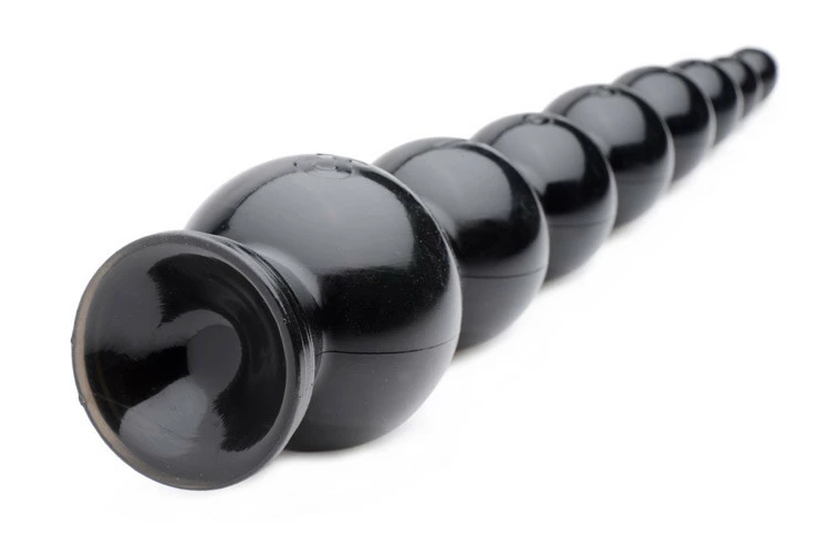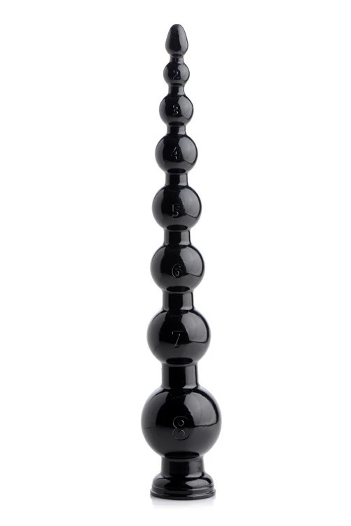 Challenge your ass with this enormous beaded design! Fans of anal beads and large insertions will not be able to keep their hands off this combination of the two. Numbered 1 through 8, each smooth, round bulb presents a new test for your anus. They start small, but gradually get bigger and bigger so that you can work on that gape! The powerful suction base anchors to most flat surfaces. If no shaft is ever big enough for you, if no cock has ever reached deep enough… prepare to get hosed! This phthalate-free anal annihilator is compatible with both silicone and water-based lubricants. Clean with warm water and mild soap.