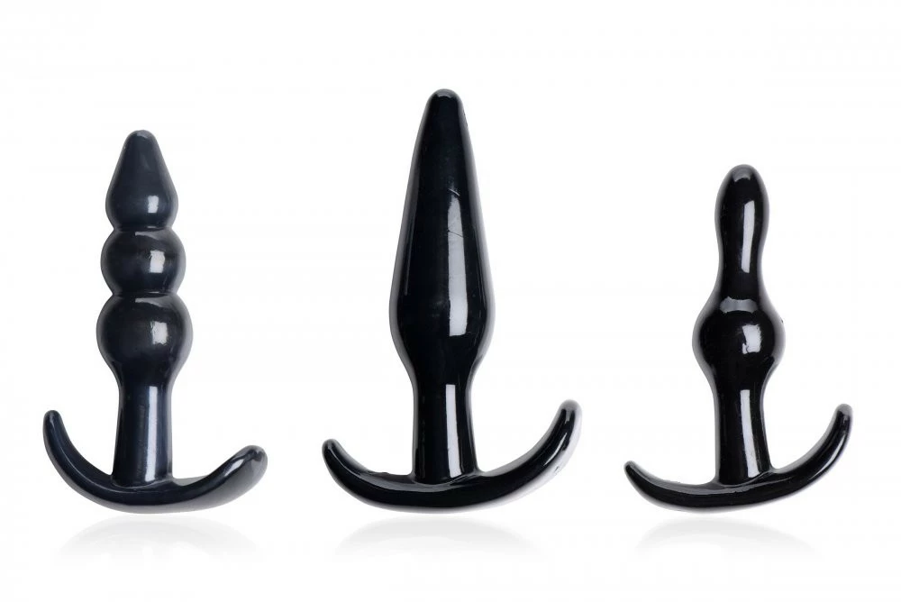 Adventure into anal pleasure with 3 small, comfortable plugs that will delight your booty! Each of these plugs is designed with beginners in mind, managing to be petite and sleek for a pleasant insertion, but with unique shapes to add excitement! Tease yourself with the classic anal plug and savor the smoothness as it slides into your hole. Try the single bead plug for a quick ‘pop’ into your bum. The triple bubble plug treats you to the sensation of anal beads! Tapered for easy insertion, each plug has a curved, ergonomic base to sit snugly between your cheeks for as long as you want, whether you’re wearing a plug out on a date or in bed.