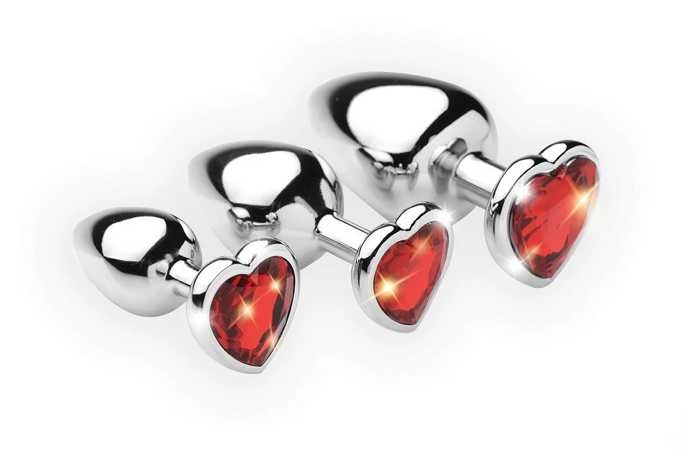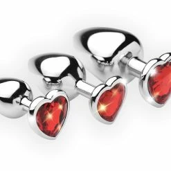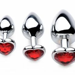 Indulge your anal desires with a set of three plugs that will give you pleasure at your own pace! Three different sizes allow you to experiment with sensations and limitations. Start small with a petite penetration and work your way up to the larger, more filling plug. The shiny metal is smooth for an easy insertion and ultra-comfortable wear. The narrow stems allow you to relax your hole so that you can stay in the moment as you get feisty with your lover or go out for date night! Your partner will love the view as you bend over or crawl around for them with any of these pretty plugs in your ass! Wear these plugs during oral or vaginal sex, masturbation, foreplay, or to warm up for anal sex. The sleek metal is compatible with all lubricants. Clean with mild soap and warm water.