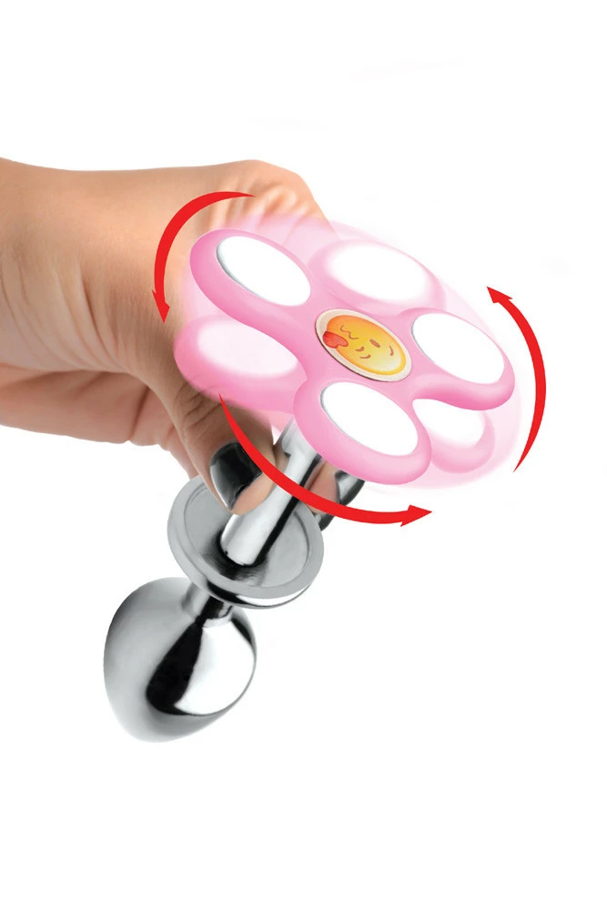 Stick a fidget up your ass and your partner will stay focused on your booty! The spinning sensation that has swept the nation can now be shoved up your ass with this sleek, metal butt plug, now with a longer stem than the original for improved function! Is your partner easily distracted when you’re trying to have a little anal fun? Not likely, but they’ll still enjoy exploring all the unique features of this anal toy. This fidget spinner lights up with 3 colorful LED settings on each disk so that their eyes stay exactly where you want them. The medium size, tapered shape, and seamless material make the plug a comfortable anal toy for all experience levels. Give your booty some attitude with 3 magnetic icons that adorn the center of the fidget. Made of stainless steel, it is non-porous and compatible with all types of lubricant.