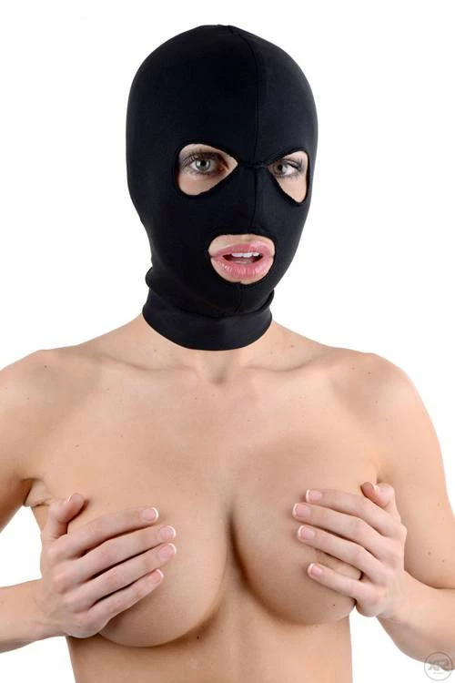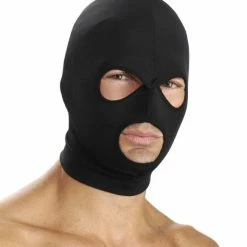 This is designed to be very comfortable and stretch completely over the head, making it one of our most popular spandex hoods. This particular hood has an opening for both the eyes and mouth. For those who like fantasy of a dungeon guard or mysterious keeper of the slaves will find this spandex hood to fit with the fantasy. This hood is one-size-fits-all.