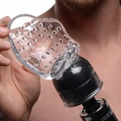 Deliver an intense cock massage for teasing and pleasing masturbation or partner play. Just slip this accessory onto your Thunderstick, Divinity Wand, or similar standard-sized vibrating wand and get to stroking! An open, and flexible design wraps around shafts of all sizes with a light grip. The smooth nubs on the inside will surround your dick and bring you closer and closer to the edge with every thrust. Imagine the power of a massage wand thrumming against your throbbing cock as you’re brought to the brink! Compatible with water-based and silicone lube, this material can be cleaned after use with warm water and a mild soap or toy cleaner.
