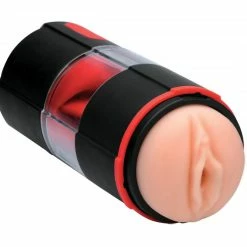 The impossible just got possible! This automatic stroker allows you to plunge your cock through soft, supple pussy lips that vibrate… but that’s not all! Once you’re in you’ll feel a firm, but flexible tongue flicker on the head of your cock. Experiment with 3 levels of vibration and 4 patterns of pulsation as you fuck that honeypot and honey-sucker at the same time. Or, if you prefer, you can detach the bottom half and just use the tongue on your balls, asshole, nipples, etc. Due to the premium materials, this male masturbator is only recommended for use with water-based lubricants. Clean after use with toy cleaner or mild soap.