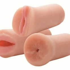 Fuck that pretty, little mouth! Slam into that wet, pink cunt! Pound that tiny, tight asshole! This blonde bombshell is craving your cock however you want to give it to her! This set of three strokers, molded directly from world-famous adult star, Jesse Jane, allows you to pummel any of her fuck tunnels whenever you want! The Queen of Porn is back and wants nothing more than to make you cum harder than ever. The stretchy material fits all shaft sizes and is so lifelike that you’ll feel like you’re fucking the real thing! Slip past those seductive lips or that adorable slit to get your cock massaged by bold ribbing, or squeeze into that booty hole to experience gentle nubs. You have complete control of the tightness with the strength of your grip. These masturbation sleeves have an open-ended design, making clean-up easy when you’re done having your way with Jesse Jane!