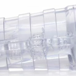 This sleek, clear Bioskin stroker has the realistic feel and size of a real ass hole! Enjoy the layered grooves and patterned ridges inside of the stroker that tighten with the help of the silicone plug. Add or reduce pressure by using the plug so you can feel the squeezing pressure on your cock or the sweet release as the pressure is reduced. After use, it’s easy to clean! Simply take the sleeve out and wash with warm water and soap, then use a toy cleaner and let dry before storing. The sleek, discreet storage case keeps your toy safe, secret and clean.