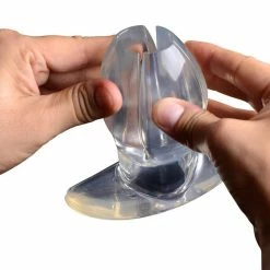 Your ass has never felt anything like this massive invasion! Stretch your insides wide with the Claw, a device for hollowing out your anus. Revel in the massive insertion while your partner takes a peek into your expanded asshole! Push the four wedges together for a smooth, manageable penetration. Once past your sphincter, the firm, yet flexible Claw will open up, pressing against your anal walls, prying you open and exposing the deep recesses of your anus. Your partner will love peering through the base into your huge, dilated asshole. They can even stuff a dildo through or fill you up with an enema. The unique sensation and endless possibilities will have you moaning and gasping in ecstasy! This smooth material can be used with silicone or water-based lubricants. Clean with mild soap and warm water after use.