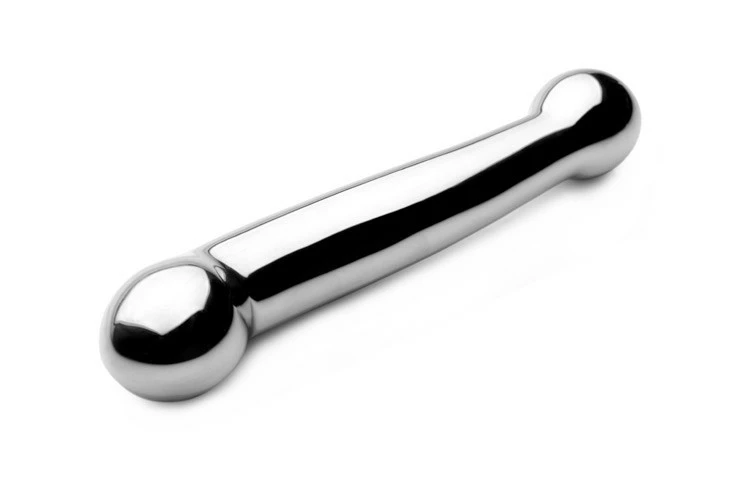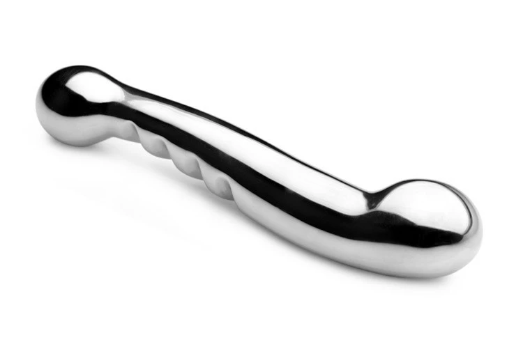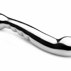 Whether used for yourself, or with a partner, the Steel Elegance Dual Dildo offers two sides of pleasure. The dual dildo is angled specifically for female G-Spot or male prostate stimulation. One side of the shaft features a series of grooves for more pleasure-packed sensations. The Steel Elegance can even be placed in warm or cool water for some exciting temperature play.