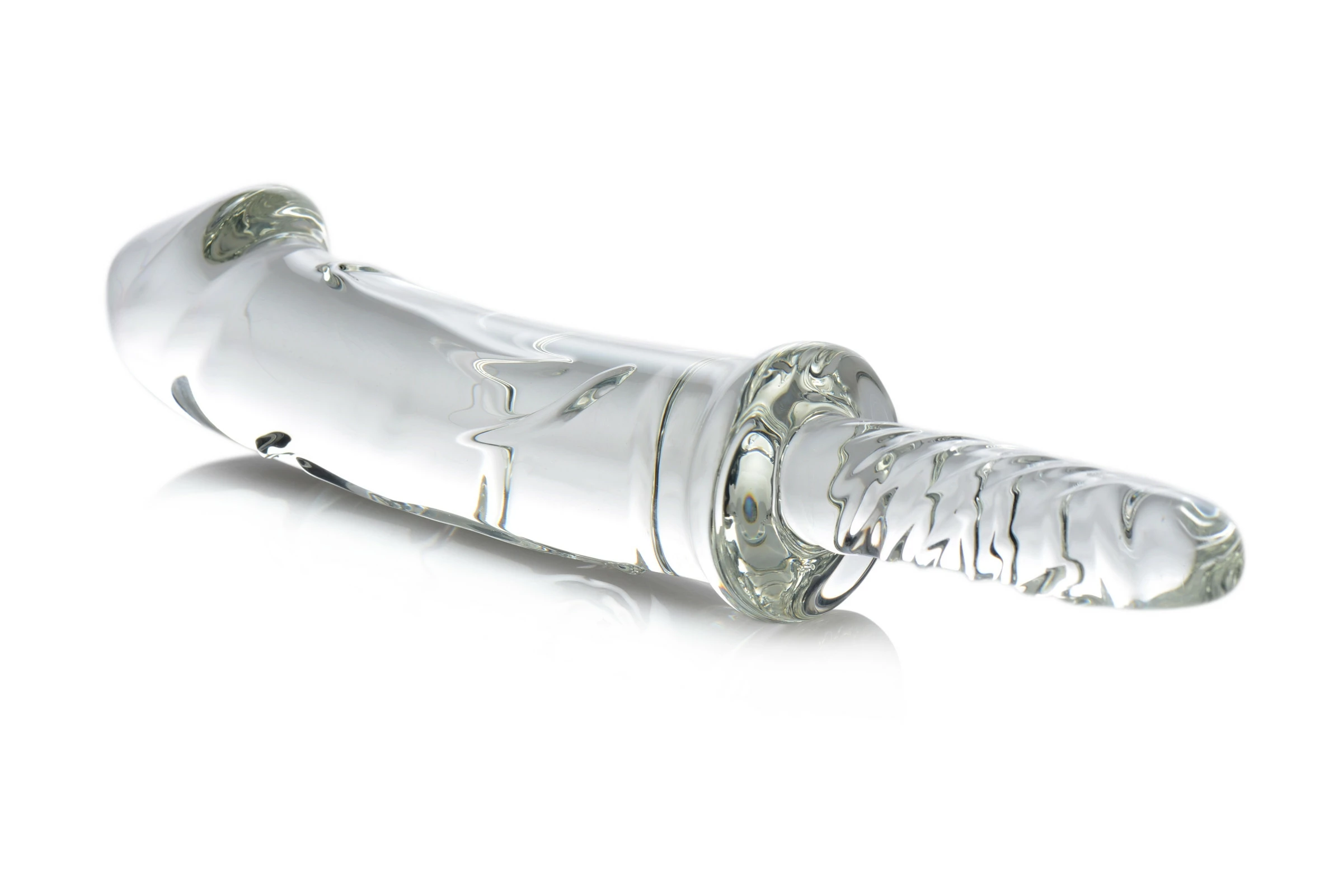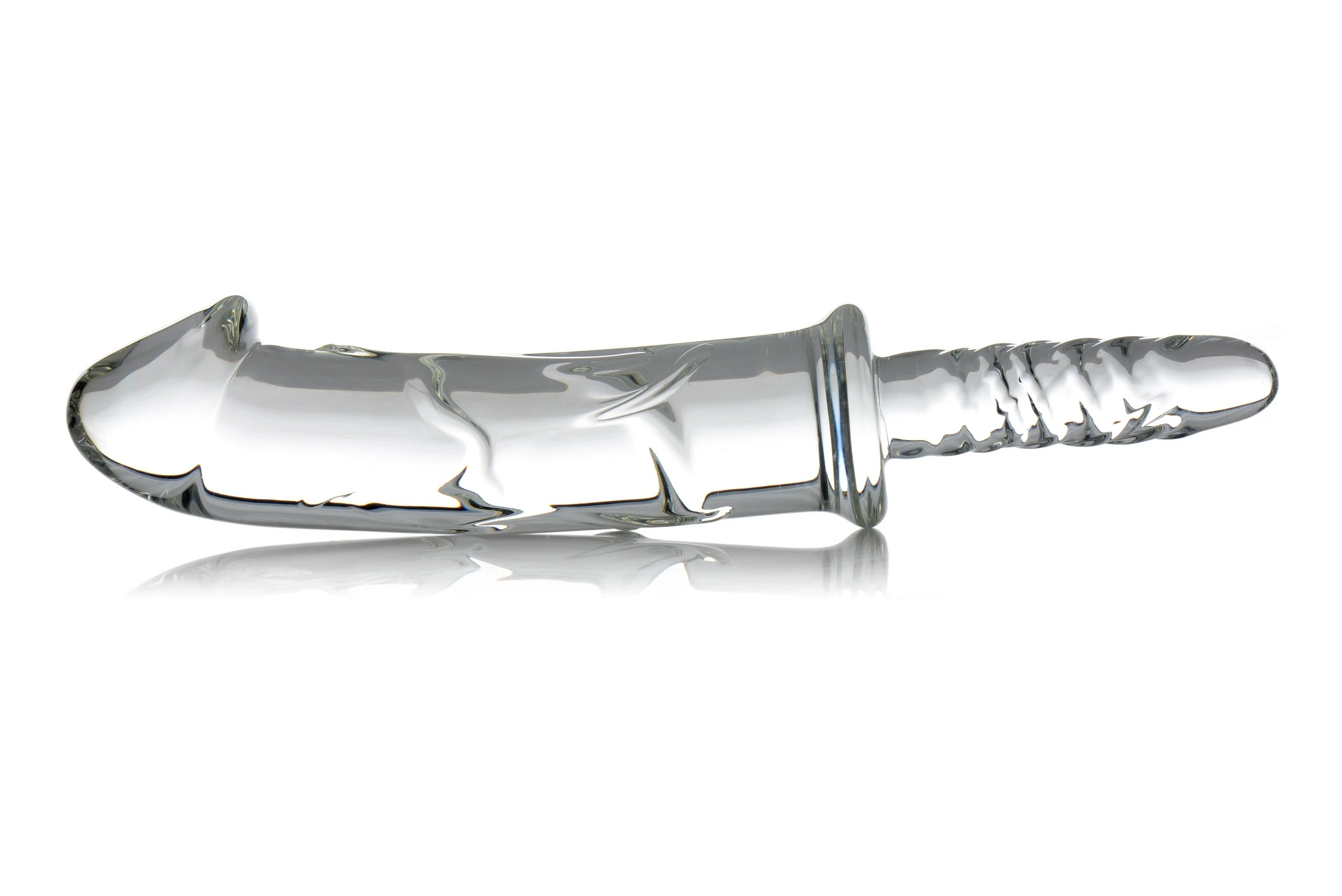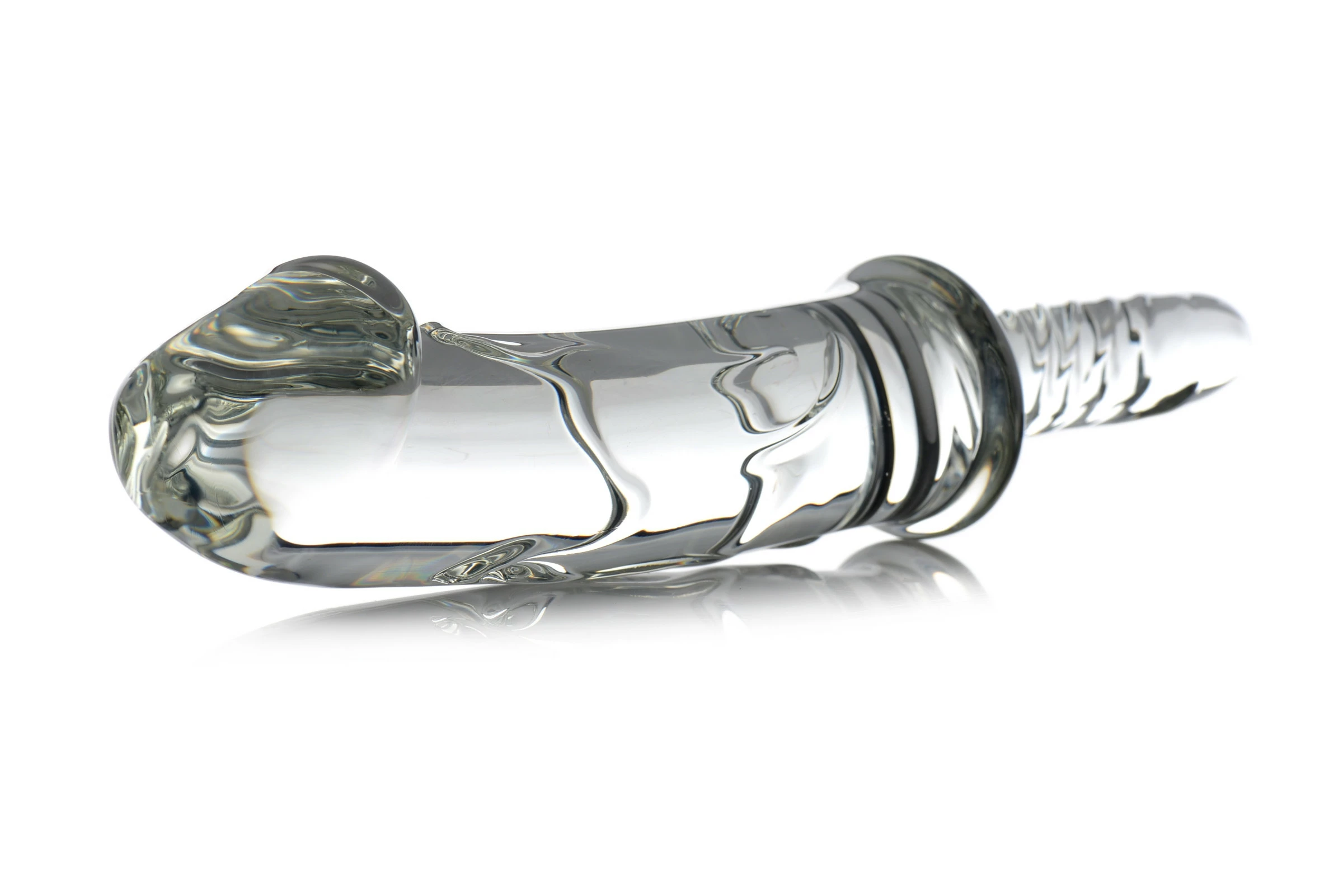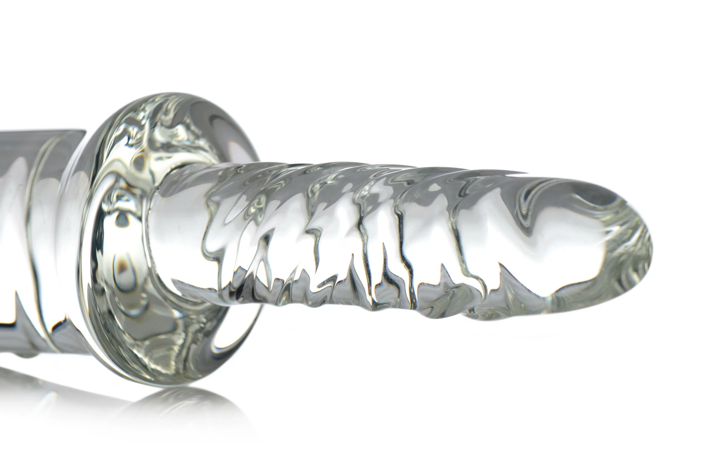 Pop the massive head into your pussy or asshole and follow it up with the thick, veiny shaft! Thanks to the ribbed handle, you’ll have a firm grip as you pummel your hole with this shatter-resistant glass dildo. Turn this beautiful sex toy around and you can even use the hilt as another dong! The hard, heavy material creates a greater sense of fullness within you, and is also idea for temperature play when prepped with hot or cold water. Borosilicate glass is non-porous and non-allergenic. Use with any lube of your choosing. Cleaning is easy with mild soap and warm water.
