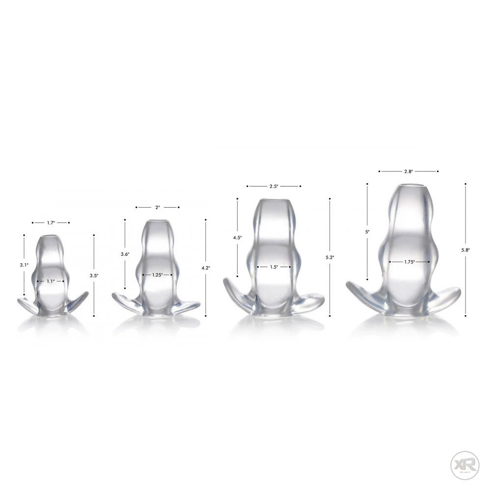 Measurements – Large: Overall length 5.2 inches, insertable length 4.5 inches, widest insertable diameter 2.5 inches, inner diameter 1.5 inches