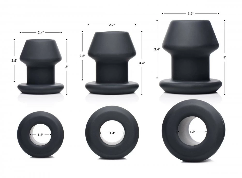 Gape-Grommets 3 Piece Hollow Silicone Anal Dilator Set Specs: