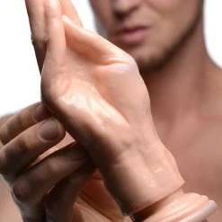 Ready to take an entire life-sized hand deep in your pussy or asshole? All five fingers of this unique dildo are pushed together to form a tapered tip to help get you started. Give yourself a slutty gape from extreme use with this realistic fister. Every digit will massage your inner walls, taking you to the new level of ecstasy. A partner can push this into your eager hole, or you can mount the suction cup base to a smooth, hard surface and force it in yourself. You’ll need plenty of lube to fulfill this fantasy, but it’s worth it! The firm, but flexible material is phthalate-free, body-friendly, and compatible with water-based and silicone lubricants. Clean after use with mild soap or a toy cleaner.