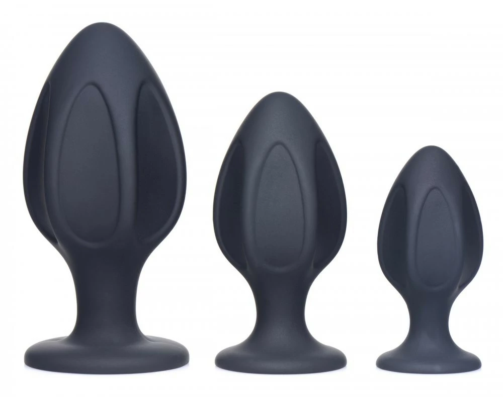 This trio of silicone butt plugs features a unique asterisk shape to provide a tantalizing fill for your ass to squeeze against! Constructed with a plushy silicone material for a soft and squeezable texture with an underlying firmness for an addicting anal fill, these Triple Juicers are designed to provide a satisfying and unique anal fill you can’t find anywhere else. The graduated sizing from small to large makes these plugs accessible and enjoyable at every anal play skill level!