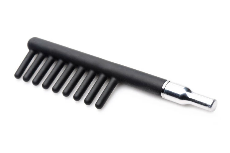 Enjoy electrifying erotic excitement with this exclusive Violet Wand kit, featuring 3 sadistic silicone attachments! The mushroom-shaped attachment focuses the electric current to pinpoint each jolt into your plaything’s vulnerable flesh. The comb has 9 teeth that spread the E-stim along a length of skin in 9 sharp zaps. The flogger is adorned with soft falls that pack a mean bite, whether you’re swinging hard for impact, or gently teasing along their body. Adjust the intensity of the electrosex transmission, from tickling tingles, to sizzling shocks! The wand has an ergonomic silicone handle so that you maintain a firm grip, as well as a long cord to give you plenty of room to move around your prey. Compatible with most violet wand attachments.