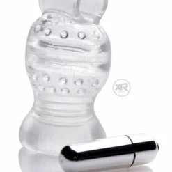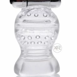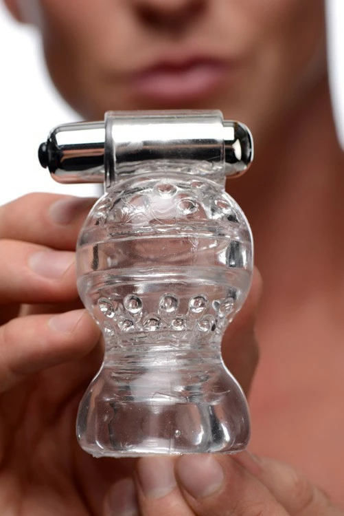 Target your cock head for pleasure with a short, stretchy, textured stroker that hums! Whether you’re jacking off or getting teased by your partner, this sleeve allows you to stimulate the most sensitive part of your penis with soft nubs, ridges and powerful vibration. Why masturbate the old fashioned way when you could double the excitement? You can even remove the vibrating bullet and use it on your balls or your partner’s body! This material is compatible with both silicone and water-based lubricants and cleans easily with mild soap and warm water.