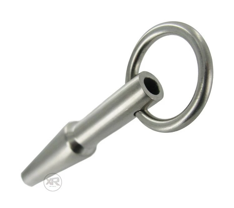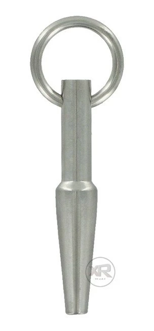 One of our most popular pieces of Penis Jewelry! Now you can have the pierced look with out the piercing! This plug has a hole drilled through the middle of it to allow the wearer to have this plug on 24/7. This device’s unique design allows for easy insertion and once the plug is in the design help keep it in with out slipping out. So get the hot pierced look and still be able to spew your love juice all over your partners face with this hot item!