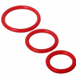 This set includes three silicone cock rings (choose from red, black, or clear) in these sizes: