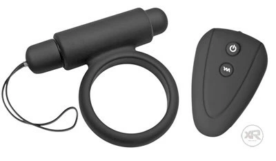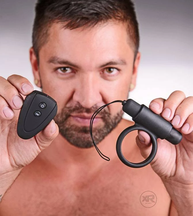 Now you can combine the power of a strong vibrating cock ring with the power of controlling every sensation it emits! This silicone cock ring wraps tightly around his cock and balls to enhance his erection, making him stronger, more sensitive, and even longer-lasting while he throbs with need. The 10 powerful functions of the bullet vibrator can be easily controlled by the wireless remote, allowing you to position it so that it teases his balls, taint, and cock or find your perfect rhythm while you let him fuck you. No need to stop a good pounding to change the setting on the device, you can give yourself all new waves of pleasure with the simple click of a button. You have all the power with this intense couples toy.