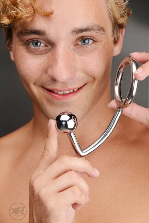 The Anal Intruder Cock Ring is a unique device that not only keeps your cock stiff, but also keeps your ass stuffed. The stainless steel cock ring, with 2″ inside diameter and 2.75″ outside diameter, secures like a regular cock ring to keep him hard, while the 1.25″ inch wide chrome plated steel ball penetrates his ass hole with an insertable length of 1.2″. While wearing this device and moving around, you will feel the anal intruder moving inside you. It’s not going anywhere. Try it while fucking for a truly orgasmic experience.