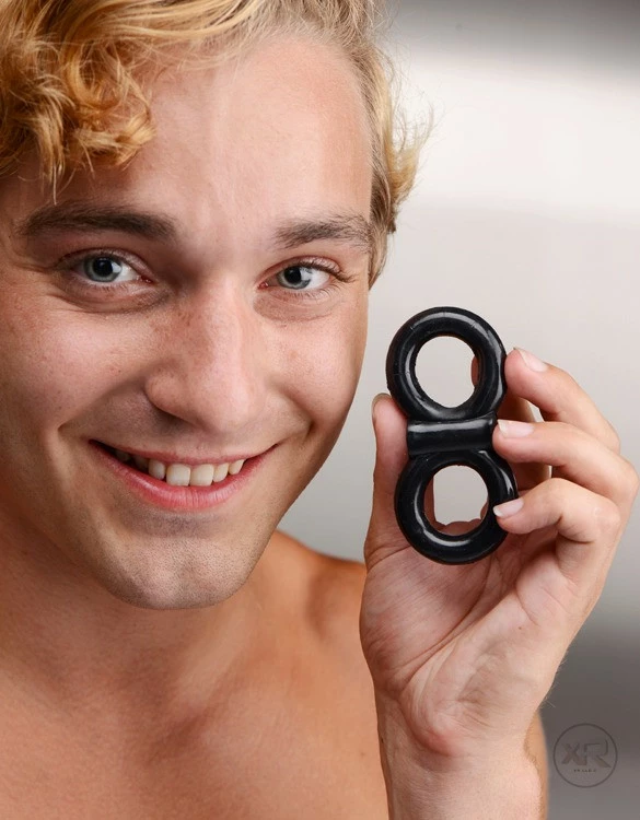 This vibrating double cock ring slips easily onto the cock and scrotum. During sex the cock ring will help the penis last longer, by regulating the blood flow. Bring in the vibration (centered between the two rings) allows for stimulation for the man (on his cock and balls) and his partner. The vibration is designed to last up to 40 minutes.