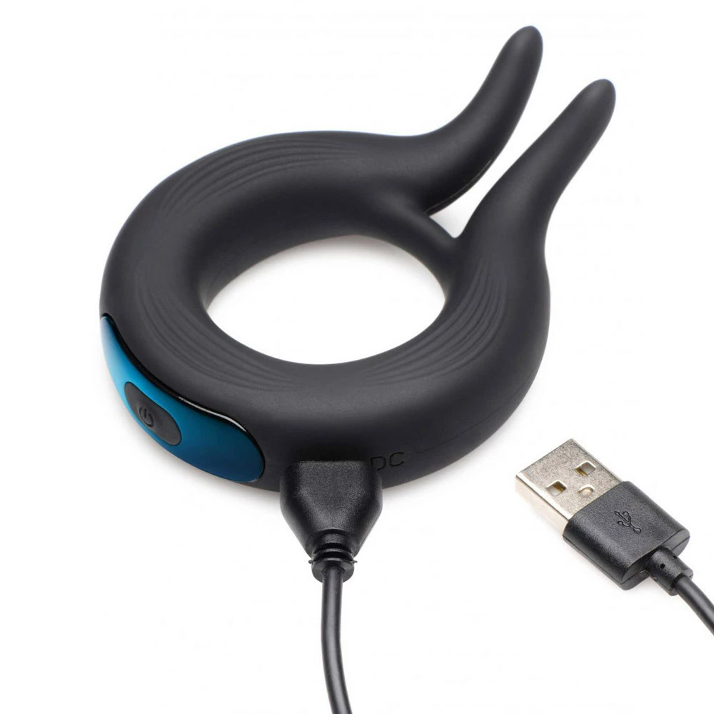 This silicone cock ring does more than just help keep you hard. It gives you pleasure as you masturbate or fuck your partner and it gives them pleasure, too! This cock ring has viper prongs that tickle your partner’s ass, taint or clit -depending on where you put your cock during sex. It has two motors so you can enjoy vibration all around your shaft and control the 10 different vibration patterns. Made of premium, phthalate-free silicone, it is stretchy, soft and easy to take on and off. Use water-based lube for best results and wash off with warm water and soap after each use. For an extra clean toy, spray with toy cleaner and wipe dry before storing or charging up with the USB cable for next time.