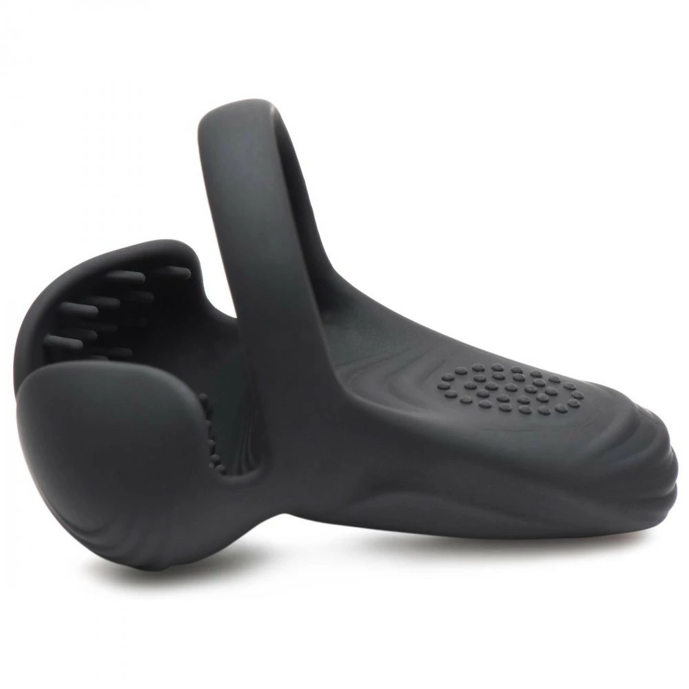 Cup your balls in a buzzing silicone sack and enjoy the intensity of this taint stimulating, ball cupping vibrating cock ring! Never leave an erogenous zone untouched. With the inner lining covered in small nubs and bumps your balls and perineum will be deliciously tantalized during masturbation and sex. The cock ring helps keep it in place and out of the way of hands, mouth, pussy and ass as your partner rides you or you stroke yourself. With 3 speeds and 7 patterns to enjoy, you’ll be cumming in no time! Or let yourself edge so you make it last longer. Hand your partner the remote control and see what kind of fun they have as they can both see and feel your responses while either on top of you or standing nearby, delightfully teasing you! With a waterproof rating of IPX6, it can handle low pressure jet streams and wet and wild fun! Recharge using the USB cable provided.