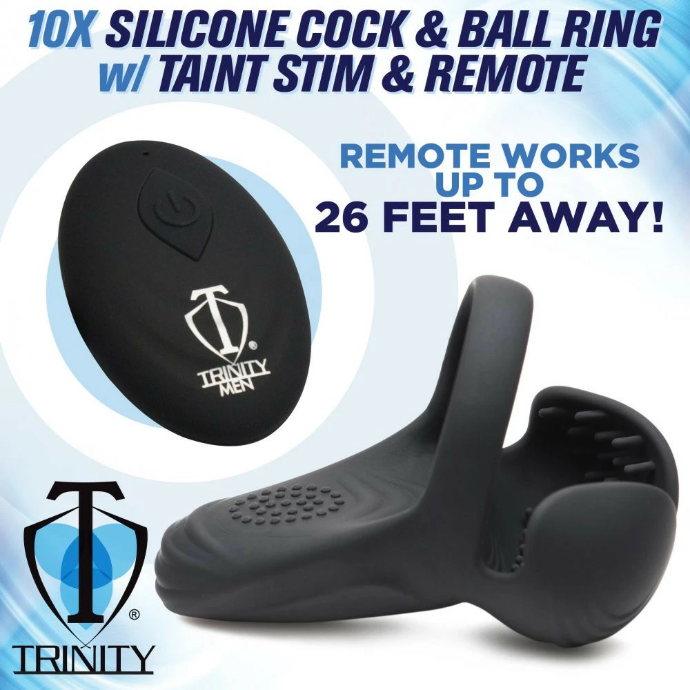 Vibrating Silicone Cock Ring w/ Taint Stim & Remote Control Specs: