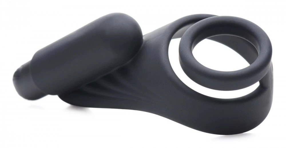 Equip your dick with this cushy cock ring built for taint stimulation! The secure hug provided by this silicone cock and ball ring is accentuated by the intense vibes of the removable bullet vibrator – designed to make your cock harder, more sensitive, and slightly larger, perfect for intensifying your fuck session or to push your cock-and-ball teasing to new heights.