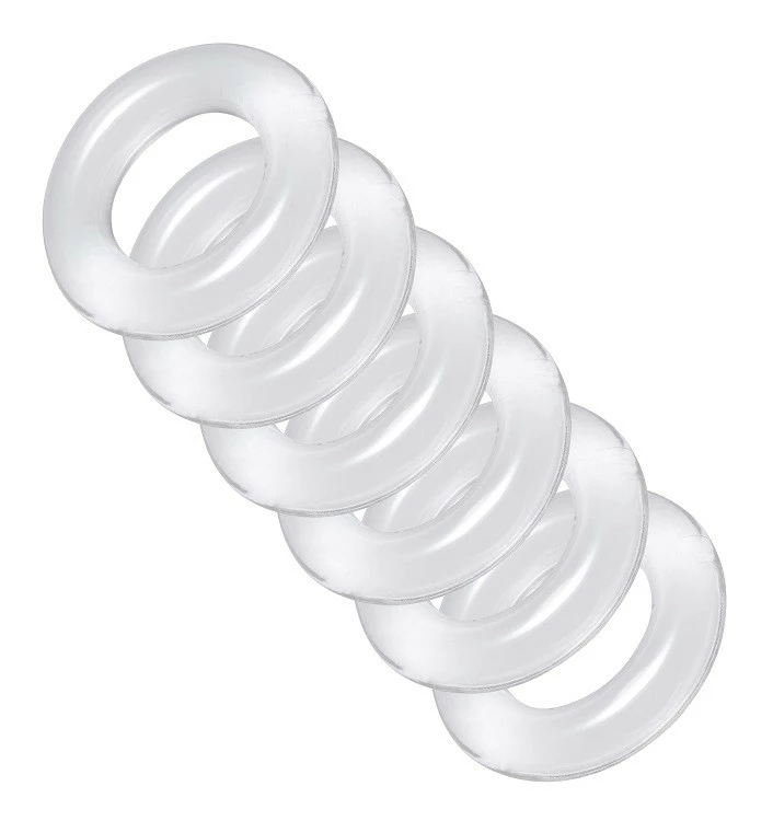 You have complete control of the level of tension when you customize your pleasure with 6 individual rings. Whether you’re new to ball-stretching or an enthusiast, you can begin with one ring and work your way up to discover where your comfort level meets maximum pleasure. Your sack will be yanked down a little more with each additional ring. You can even use one around your cock and balls to further increase sensation and hardness. Each of these six rings is ultra stretchy for convenient use and a comfortable fit. Compatible with both silicone and water-based lubricants. Clean with mild soap and water after use.