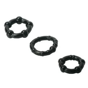 Specifications: You’ll receive three (3) cock rings in each set. Because the rubber is highly stretchable each of these rings will fit comfortably around the cock and balls. For you it’s just a matter of which design you’d like to use at the time.