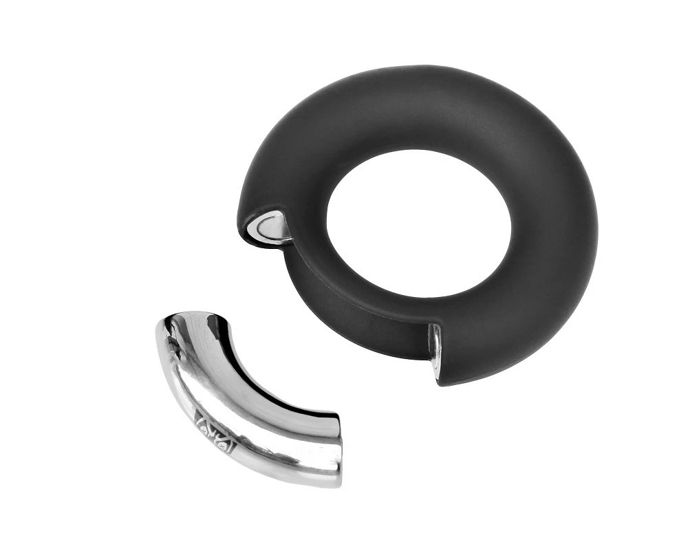 The Magno Flex Ball Stretcher combines the best qualities of silicone and heavy metal to make ball stretching sessions hassle free and more satisfying than ever! The heavy stainless steel ring is encased in a silky smooth silicone sleeve to rest against your flesh with comfort, and also protect it from the potential pinch of the metal coming together on you or your partner’s sensitive sack!