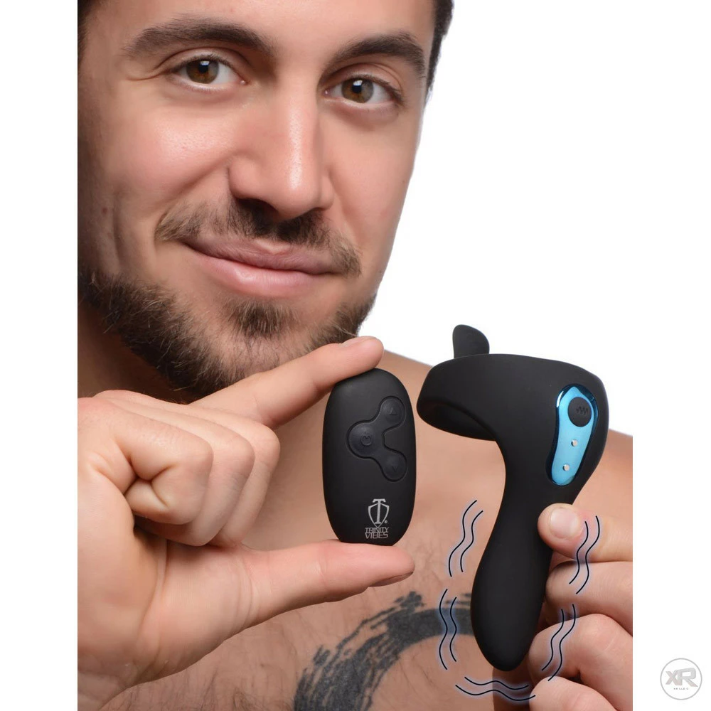 Enjoy powerful vibrations directly on your taint! Slide on the cock ring and enjoy the swelling of your cock as the blood flow slows down and engorges in your shaft. The silky smooth silicone hugs around your shaft and balls and slides comfortable between your cheeks to rest against the sensitive perineum.
