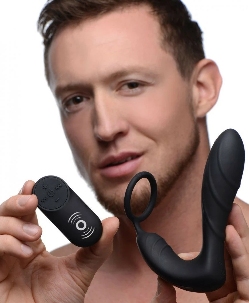 Triple your pleasure with a cock ring, taint vibe, and prostate massager!